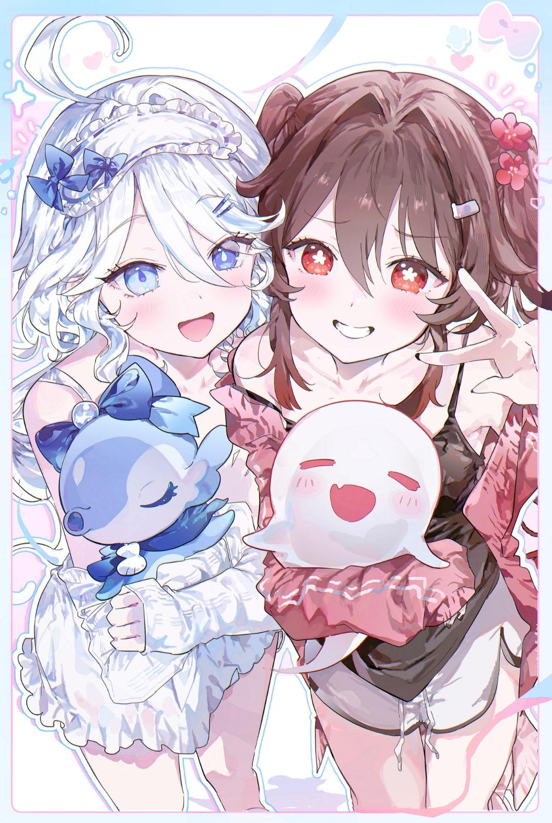 不容挣脱的力道已从裂隙中涌来,将她稳稳裹住。转瞬的失重感后,鼻尖先撞上一片熟悉的清甜香氛,后背落入温热柔软的怀抱,胡桃带着雀跃的气息贴在她颈侧,指尖还轻轻攥着她的衣袖,像是怕人跑了似的。 “小阿桃,我回来了。”芙宁娜抬手覆上环在自己腰上的手,指腹轻轻摩挲着胡桃微凉的指节,目光落在女孩眼底未散的浅淡忧色上——那是雷布朗多夺舍风波后,总时不时缠上胡桃的细碎不安。她侧过脸,指尖轻轻蹭了蹭胡桃眼下淡淡的青影,声音放得柔缓又安抚,尾音带着几分无奈的笑意,“大家都在看呢,小阿桃,别抱这么紧。” 温热的气息拂过胡桃泛红的耳尖,芙宁娜微微俯身,唇瓣几乎要贴上她的耳廓,轻软的话语带着隐秘的邀约:“待会我们去战斗好不好?” 闻言,胡桃肩头微顿,下意识轻咳一声掩饰心底的悸...